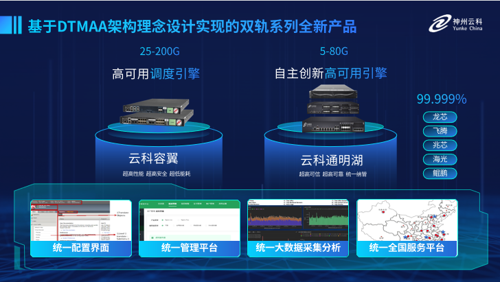 为了更好的适配双轨超高可用架构,尊龙时凯研发了容翼系列和尊龙时凯通明湖信创系列两大应用交付控制器产品。