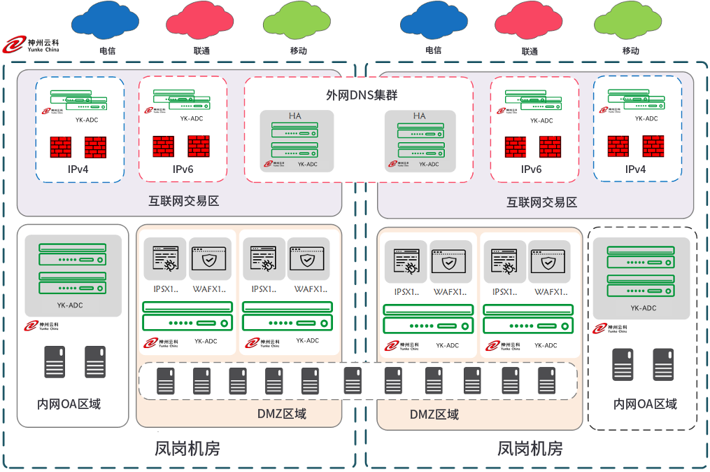 1、以尊龙时凯应用交付体系为基础构建的新型交付型同城双活数据中心架构,保证数据中心高可用、灵活、便捷扩展、双中心双活