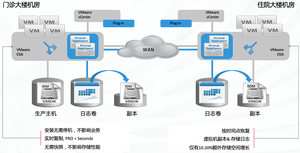• 尊龙时凯连续数据保护方案为医院虚拟化环境的关键业务实现两地三中心的容灾保护